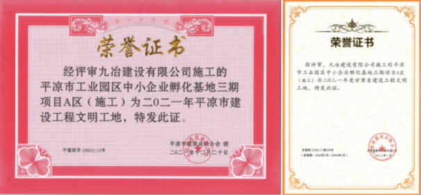 2022-03-02近日,平凉市建筑业联合会三届四次会议圆满召开,会议宣布了2021年度平凉市建设工程“三优一文明”获奖项目并颁发了省市级建设工程获奖荣誉证书,市产投集团承建的平凉工业园区中小企业孵化基地(三期)项目A区获评“平凉市建设工程文明工地”和“甘肃省建设工程文